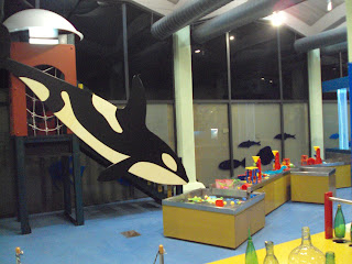 Esta semana en clase de plástica hemos hecho una bonita caja con motivos marinos usando como material una caja de quesitos. Primero la decoramos con un fondo marino, dibujando algas, peces, burbujas... y luego añadimos la cola, la aleta, el ojo y la boca para formar una ballena. Así de graciosa nos ha quedado...
